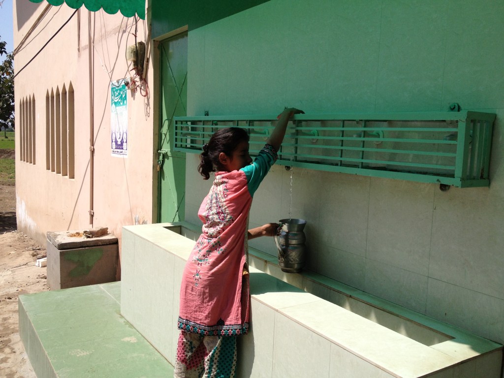 The photo shows children using the water filtration plant that was installed in Deenpura, Sialkot in December 2012. There was also a second filtration plant installed in Laudran, Sialkot in April 2013.